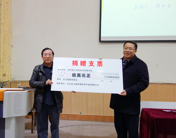 2014年12月5日下午,公司董事長(zhǎng)周和生向貴州理工學(xué)院經(jīng)濟(jì)管理學(xué)院捐贈(zèng)“建設(shè)項(xiàng)目全過(guò)程投資管理與審計(jì)系統(tǒng)”軟件,并向?qū)W院捐贈(zèng)十萬(wàn)元教學(xué)基金,大力支持學(xué)校教學(xué)和科研工作。