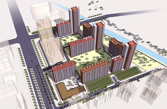 清華大學(xué)學(xué)清路教工住宅(學(xué)清苑)位于海淀區(qū)學(xué)清路107號,計劃施工工期為2011年12月10日至2014年8月6日(971日歷天),項目施工中標(biāo)價為70438萬元,其中暫估金額14110萬元;總建筑面積215812.44 m2,小區(qū)共有十棟住宅,其中三棟住宅為塔式住宅,高度100米(34層);七棟為板式住宅,高度54米(16及18層);一棟二層高配套用房樓;地下室三層(局部設(shè)有夾層)。園林景觀面積約35270平方米。